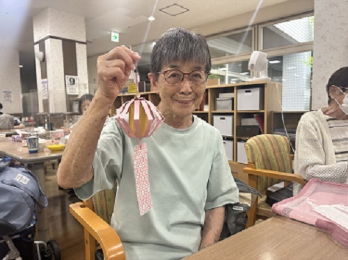 6月の作品作りで風鈴を作って頂きました。暑い日に風鈴の音が涼しく感じ、気持ちいいとおっしゃっていました。
