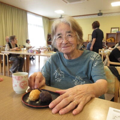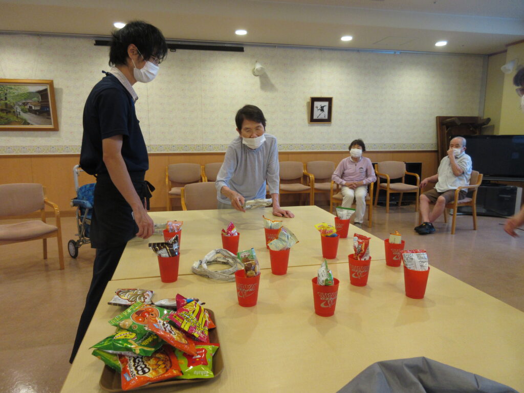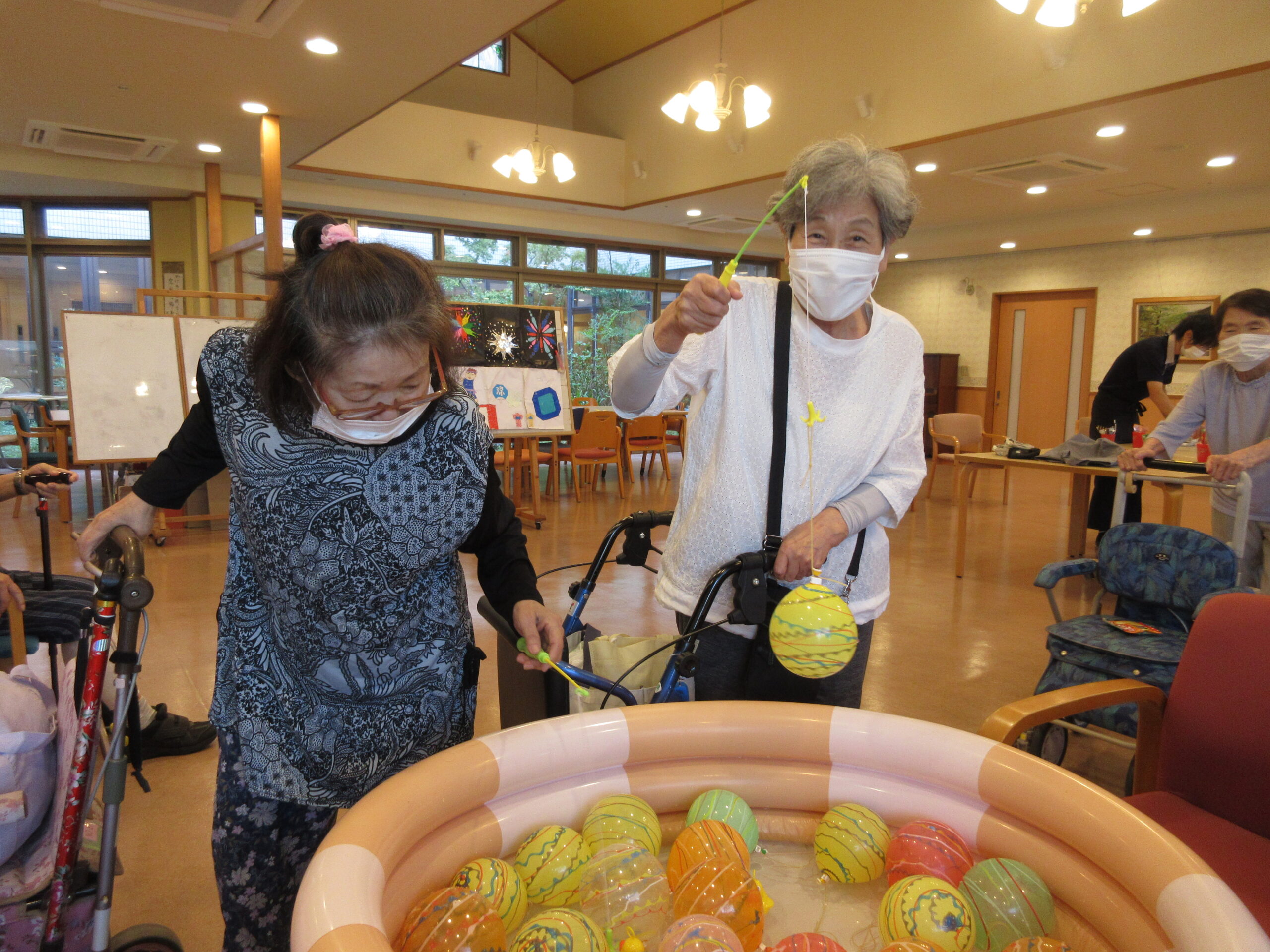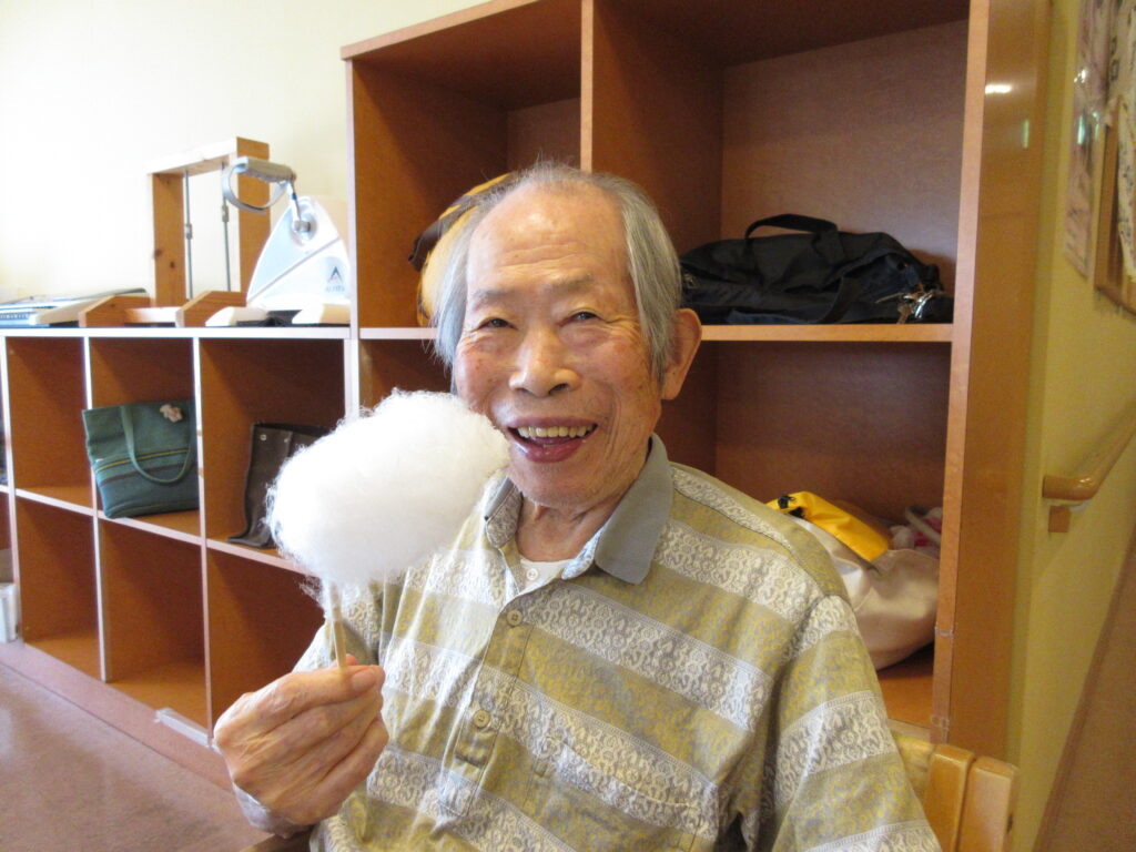 昨年8月に行い好評でした縁日を行いました。9月と少し開催が遅くなりましたが皆さん「待ってました」と大喜び!輪投げ、水風船釣りは昨年同様でしたが、今年は新たに綿菓子の機会を導入し綿あめを作りお出しすると、「懐かしいね」「甘くておいしい」と大好評でした。「来年も縁日の日に来るね!」と早々予約される方も見えました。