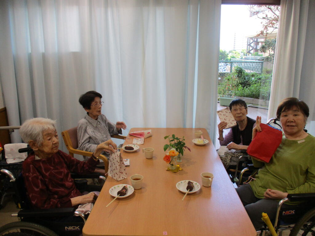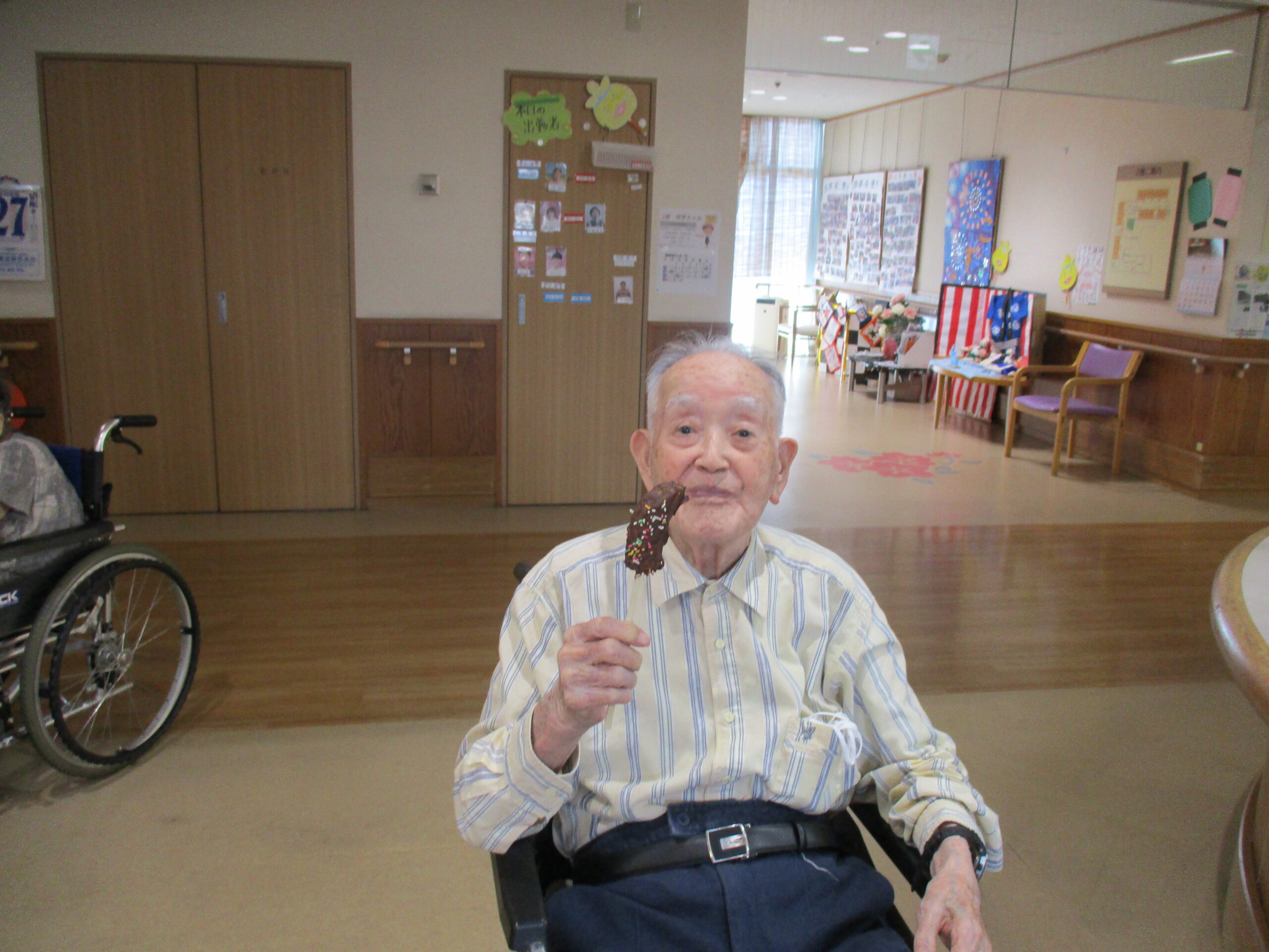 こすも祭りの後、おやつの時間に手作りチョコバナナを食べました。