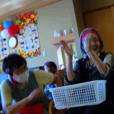 岩崎あいの郷 運動会(グループホーム) 2025.10.08 10月8日に開催された運動会のご様子の続きです。 運動会の最後の種目はもぐらたたきでした。白熱でした。皆様真剣でした。 あっという間に、もぐらが叩かれていました。 「あのもぐらを叩くゲームなのね」と、皆様の視線が集まっています。