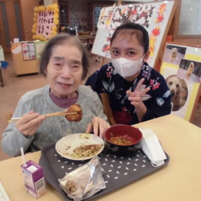 職員は法被や浴衣を着て、お祭りの雰囲気を作り、皆さん喜んでいただけました(^_^)