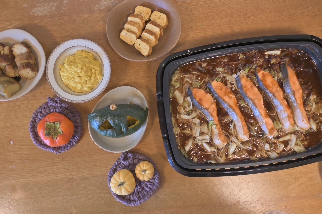 西の家では、季節を感じていただこうと秋の味覚を使ったランチを作りました。秋鮭やキノコ、カボチャなど、旬の食材をふんだんに使い、入居者の皆さんと職員が協力して調理を行いました。「香りがいいね」「昔はよく家で作ったよ」と話しながら、和やかな雰囲気の中で料理が完成。でき上がった秋のごちそうを味わいながら、自然と笑顔が広がるひとときとなりました。