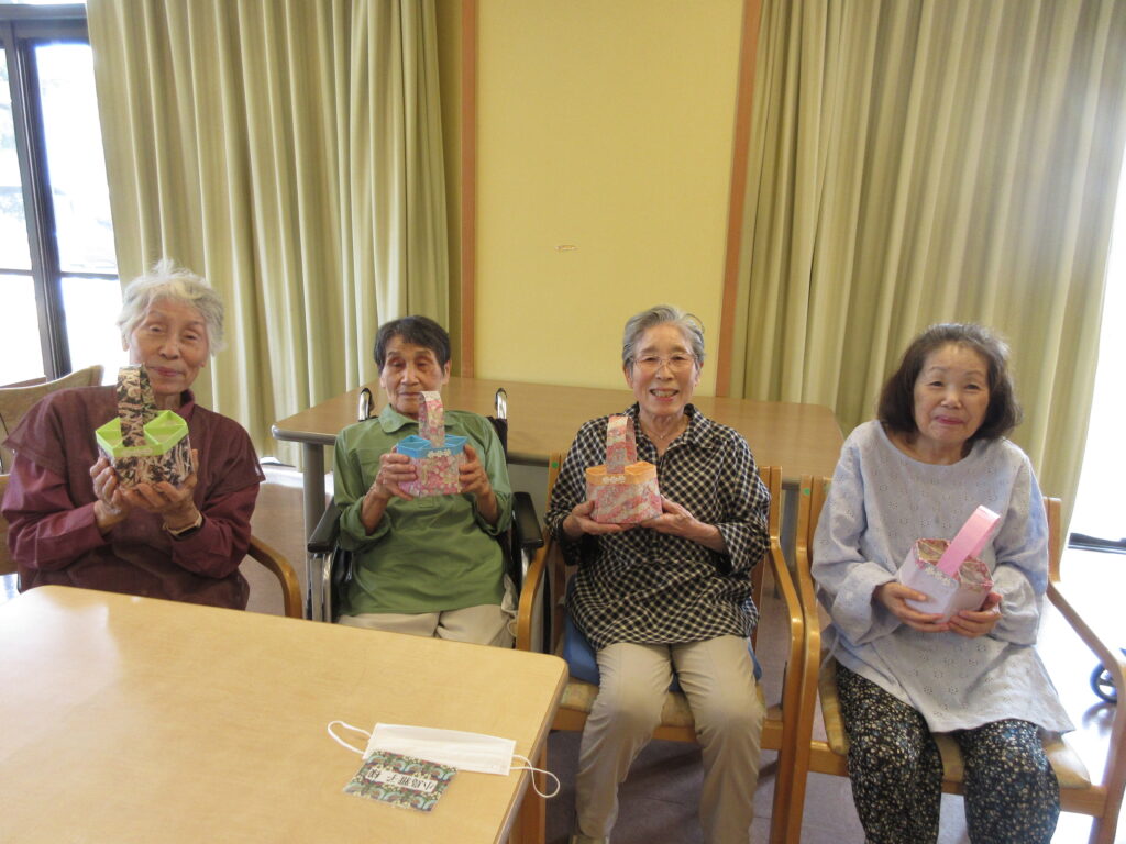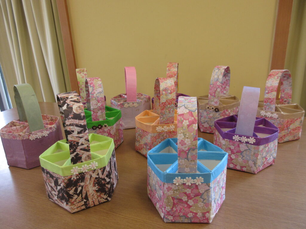 岩崎あいの郷 作品教室(デイサービス) 2025.10.28 作品教室でペン立て作りを行いました。見本を見せると皆さん「私も作りたい」とのことで沢山の利用者の方が参加されました。「色紙どれにしよう~」「あなたの色もきれいだね」等会話をしながら素敵なペン立てが沢山できました。
