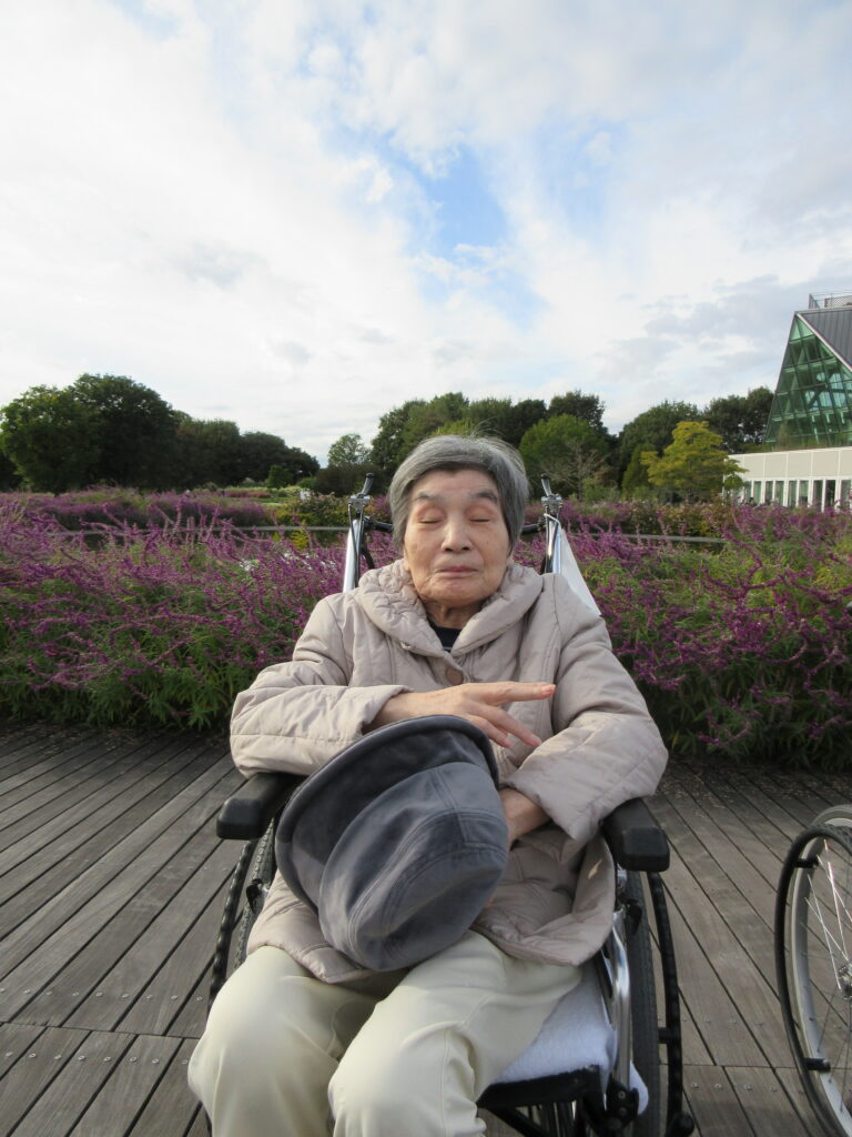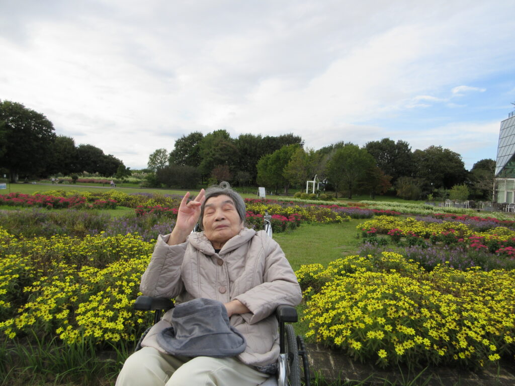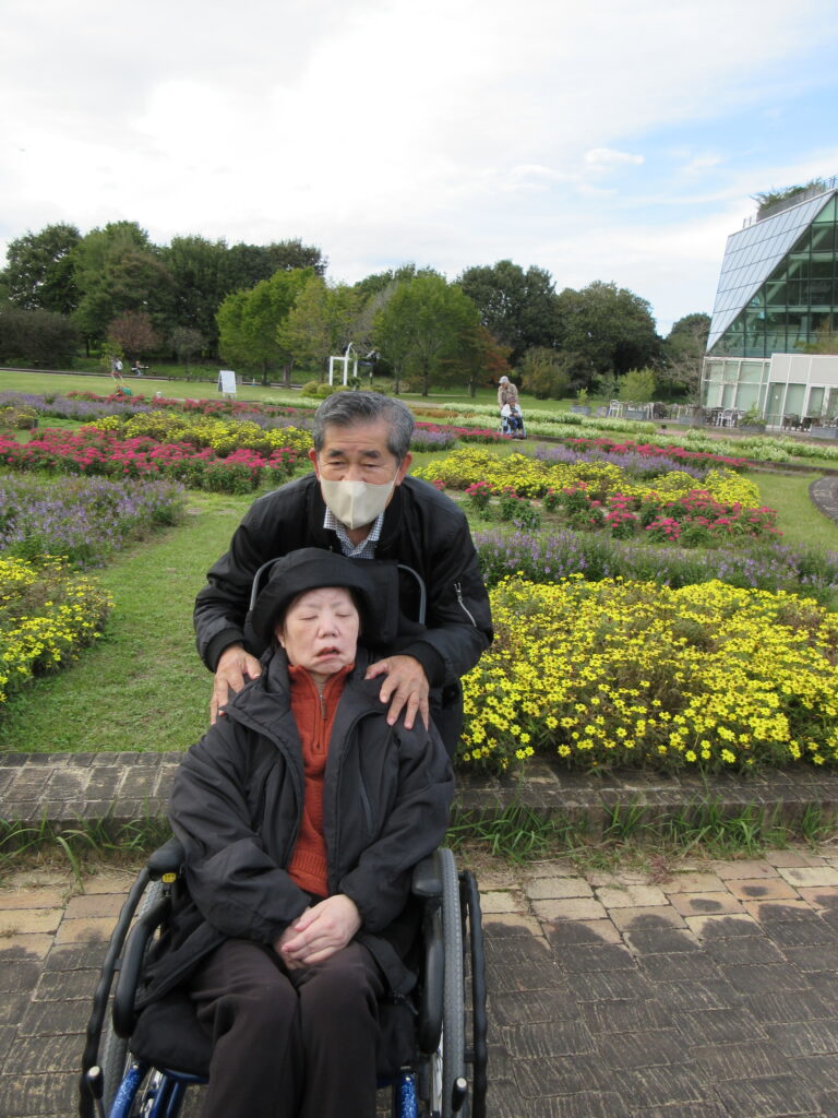 岩崎あいの郷 スイートピア江南へ 2025.11.06 秋晴れの中、日差しがポカポカと気持ちが良く、スイートピア江南へ散歩に行きました。コスモスやバラの花がきれいに咲いており、皆さんに喜んでもらえました(^_^)