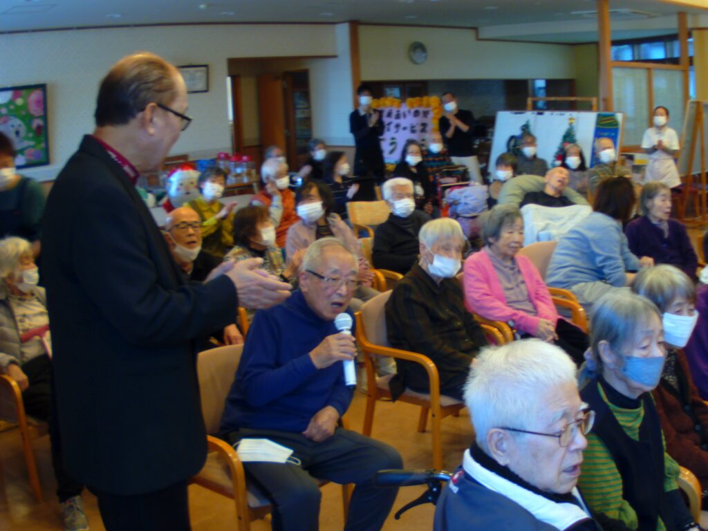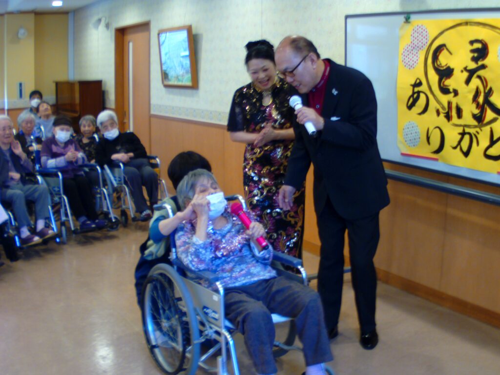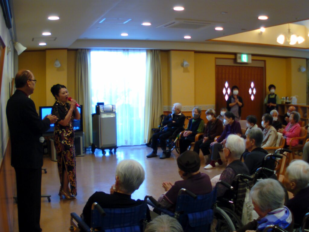 歌のボランティアさんが来てくださいました。こもれびに入居者の皆さんが集まり、美しい歌声に聴き入っていました。グループホームの入居者様がボランティアさんと銀座の恋の物語をデュエットされていました。皆様からの拍手を受けて「こんなふうに歌うのは久しぶりで、ありがとう」と感激して涙ぐまれていました。