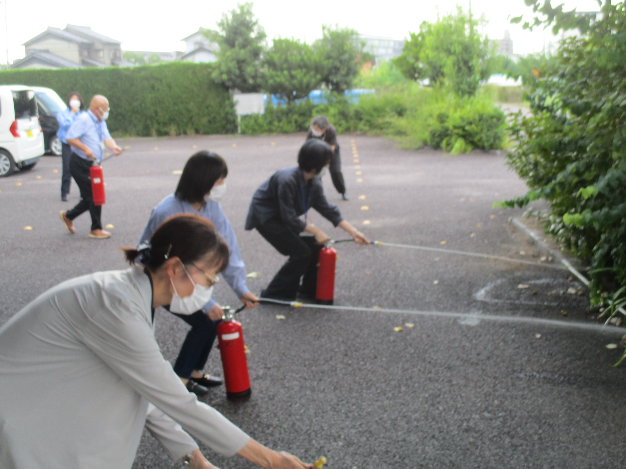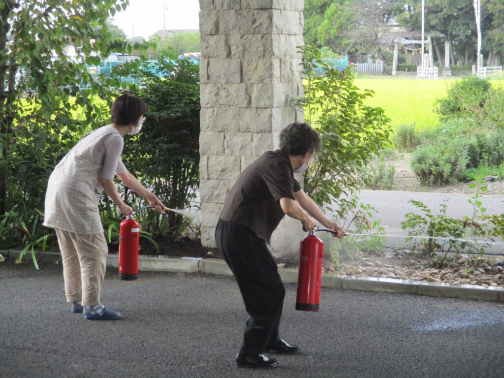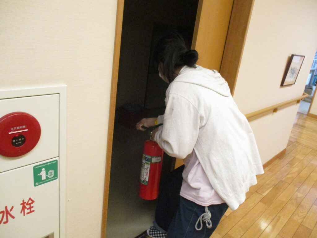 岩崎あいの郷 避難訓練・消火訓練 2025.12.12 日中に火災が起きたことを想定した、避難訓練と消火器の使用方法を学ぶための消火訓練を行いました。 実際に施設が火事になった場合、職員がどのように考え、どのように動き、入居者を守っていくかの訓練を 行い、いざという時に動けるようにしたいと思います。