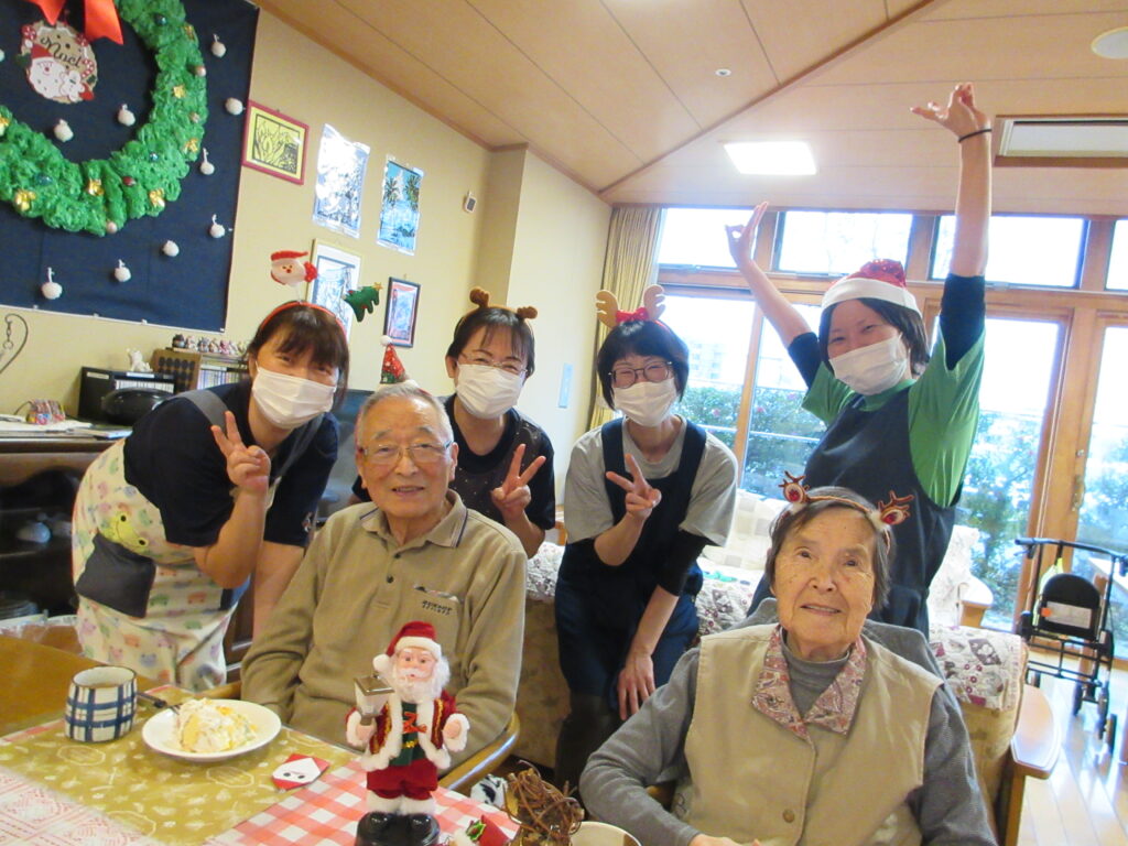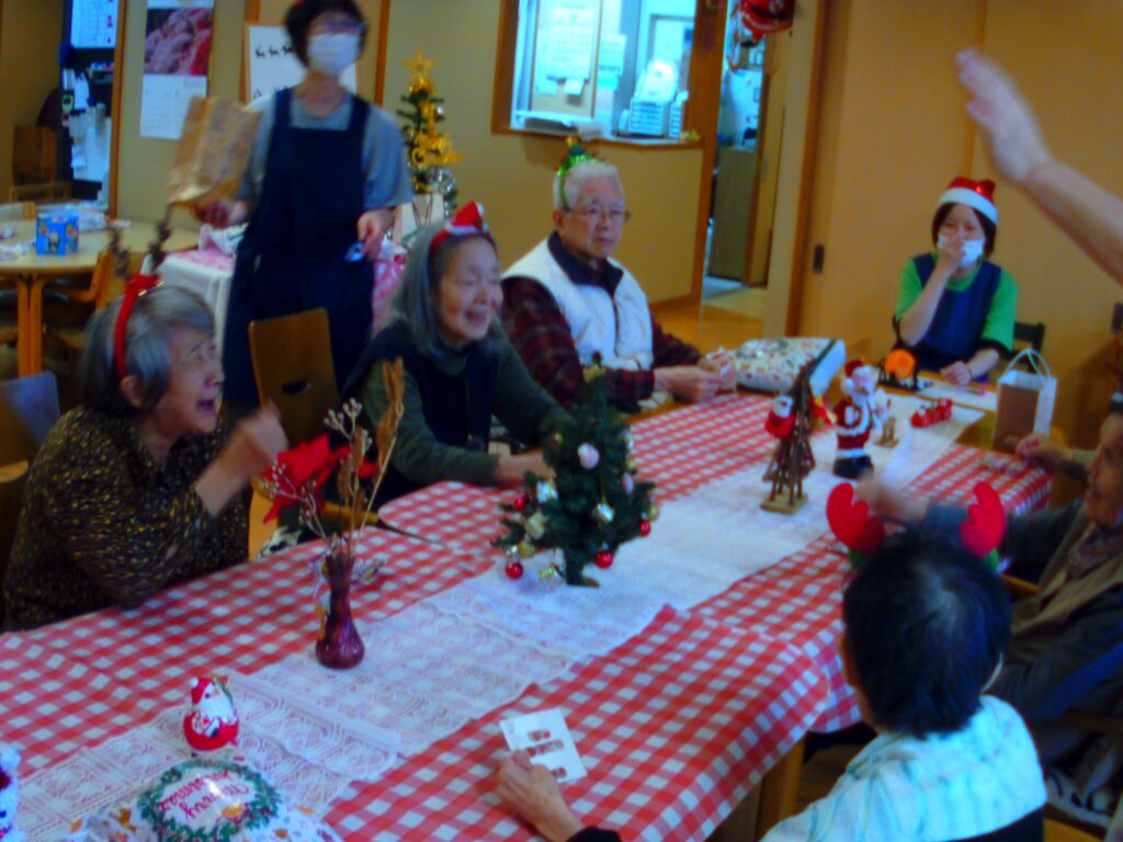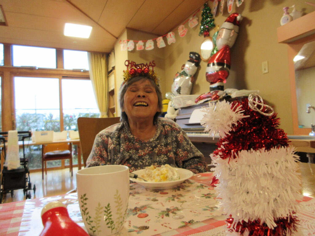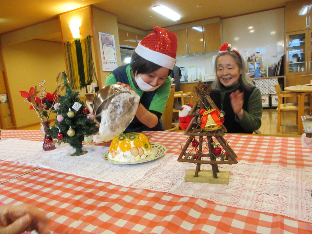 岩崎あいの郷 クリスマス会(グル-プホ-ム) 2025.12.24 マッシュポテトは入居者様が盛り付けてくださいました 練習した大正琴の演奏です ギターは職員が弾きます 可愛らしいひざ掛けが当たりました ビンゴゲームのプレゼントです 「うわぁ!嬉しい!!」 「こっちはリーチ!」 賑やかなことが大好きです ボウルケーキが出来上がりました 入居者様と一緒に作ったケーキです 「美味しいよ」とにっこり 集合写真はいつも大盛り上がりです 楽しい時間の最後に記念写真