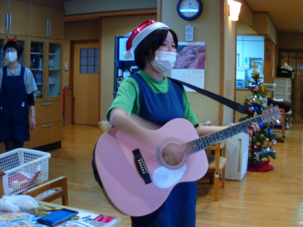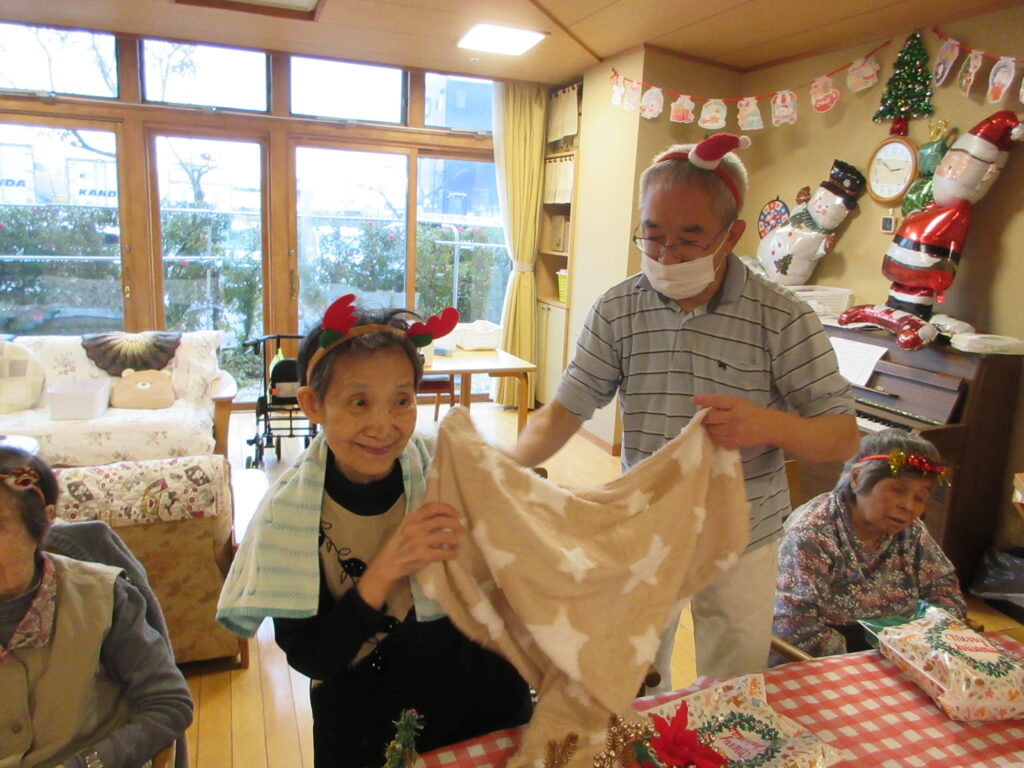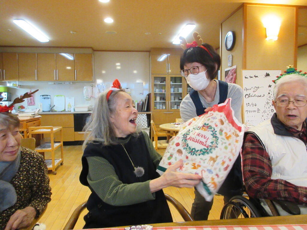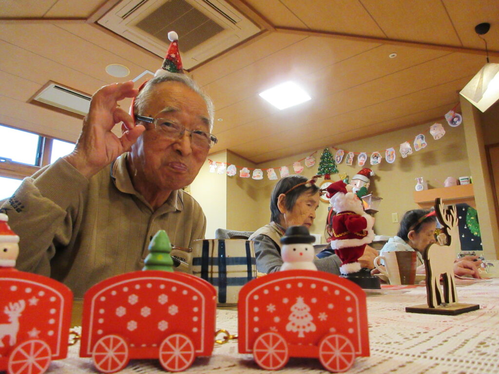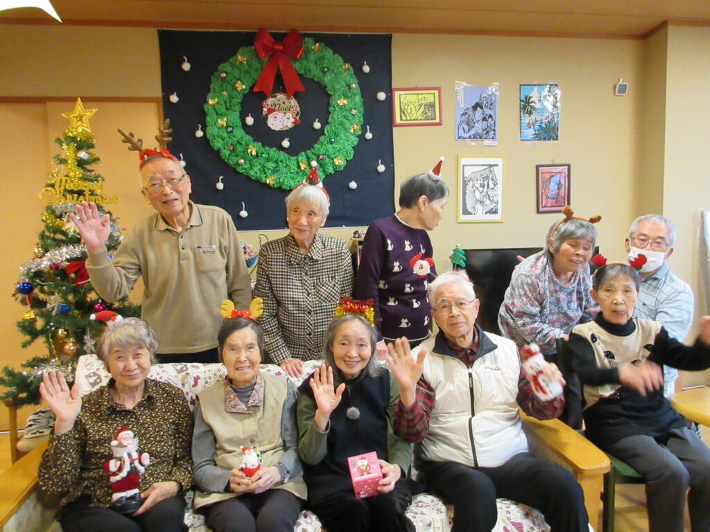 岩崎あいの郷 クリスマス会(グル-プホ-ム) 2025.12.24 マッシュポテトは入居者様が盛り付けてくださいました 練習した大正琴の演奏です ギターは職員が弾きます 可愛らしいひざ掛けが当たりました ビンゴゲームのプレゼントです 「うわぁ!嬉しい!!」 「こっちはリーチ!」 賑やかなことが大好きです ボウルケーキが出来上がりました 入居者様と一緒に作ったケーキです 「美味しいよ」とにっこり 集合写真はいつも大盛り上がりです 楽しい時間の最後に記念写真