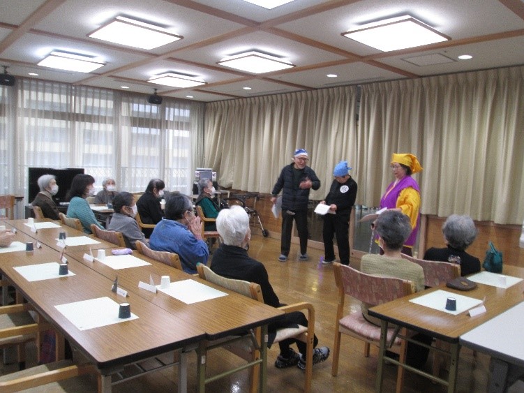 こすも クリスマス会・11,12月生まれ誕生日会 2025.12.25 2025年最後のイベントはクリスマス会。 職員と有志の入居者様を集めた“こすも劇団”による「サンタクロースと水戸黄門」を観劇し、その後は美味しいクリスマスランチをいただきました。