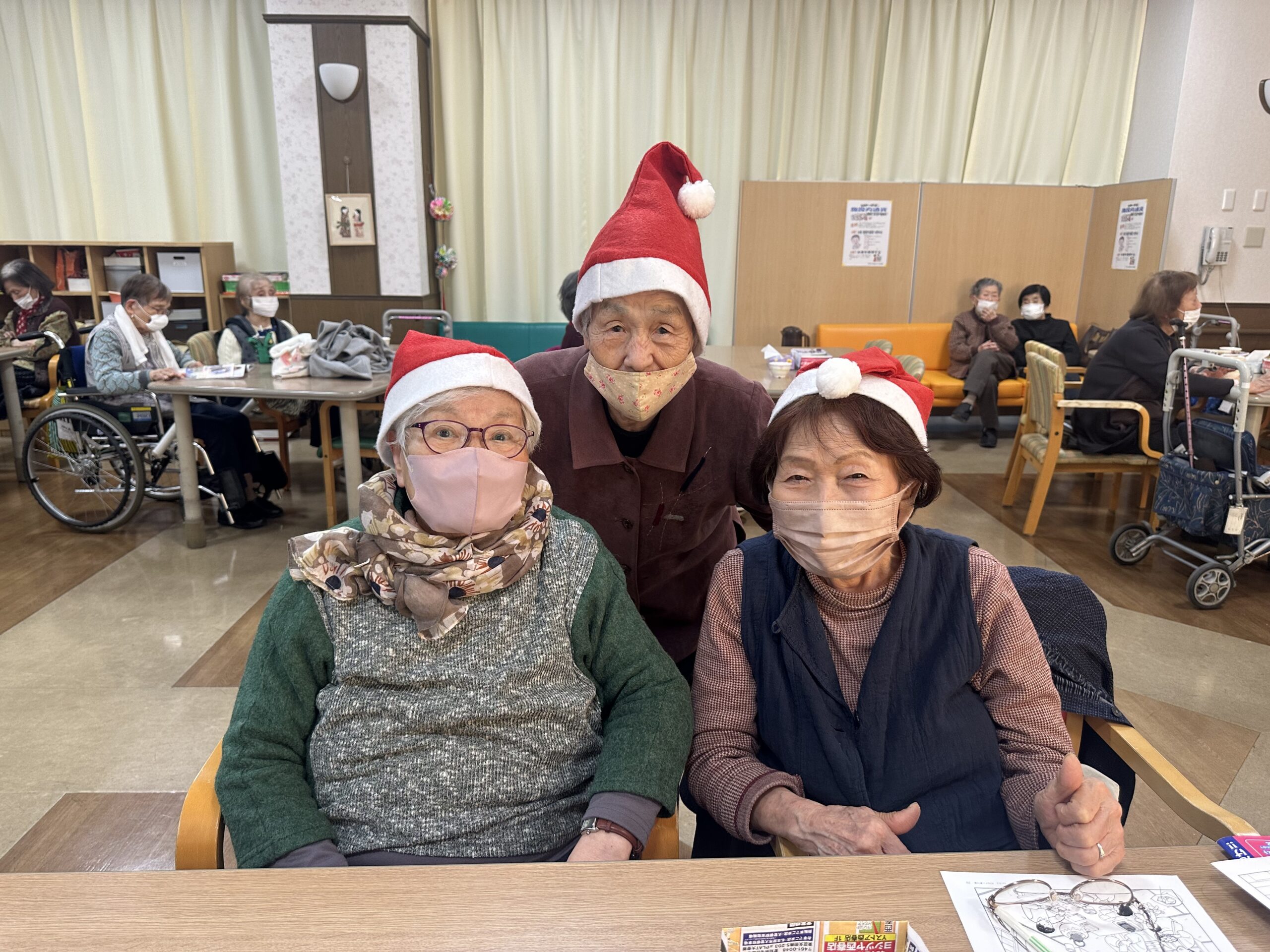 また、サンタの帽子をかぶって記念撮影を行ったところ、「みんな一緒で撮りたいね」「全員写して!」との声が続出し、いつの間にか写真会に。笑顔あふれる、心温まるひとときとなりました。
