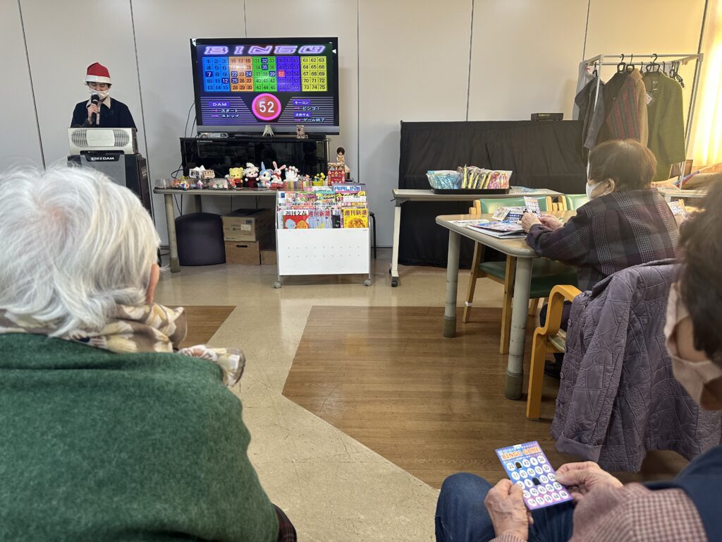 少し早いクリスマス会を行いました。景品を用意し、ビンゴゲームを行いました。数字が呼ばれるたびに一喜一憂。景品が当たると、思わずガッツポーズが飛び出す場面もあり、大いに盛り上がりました。