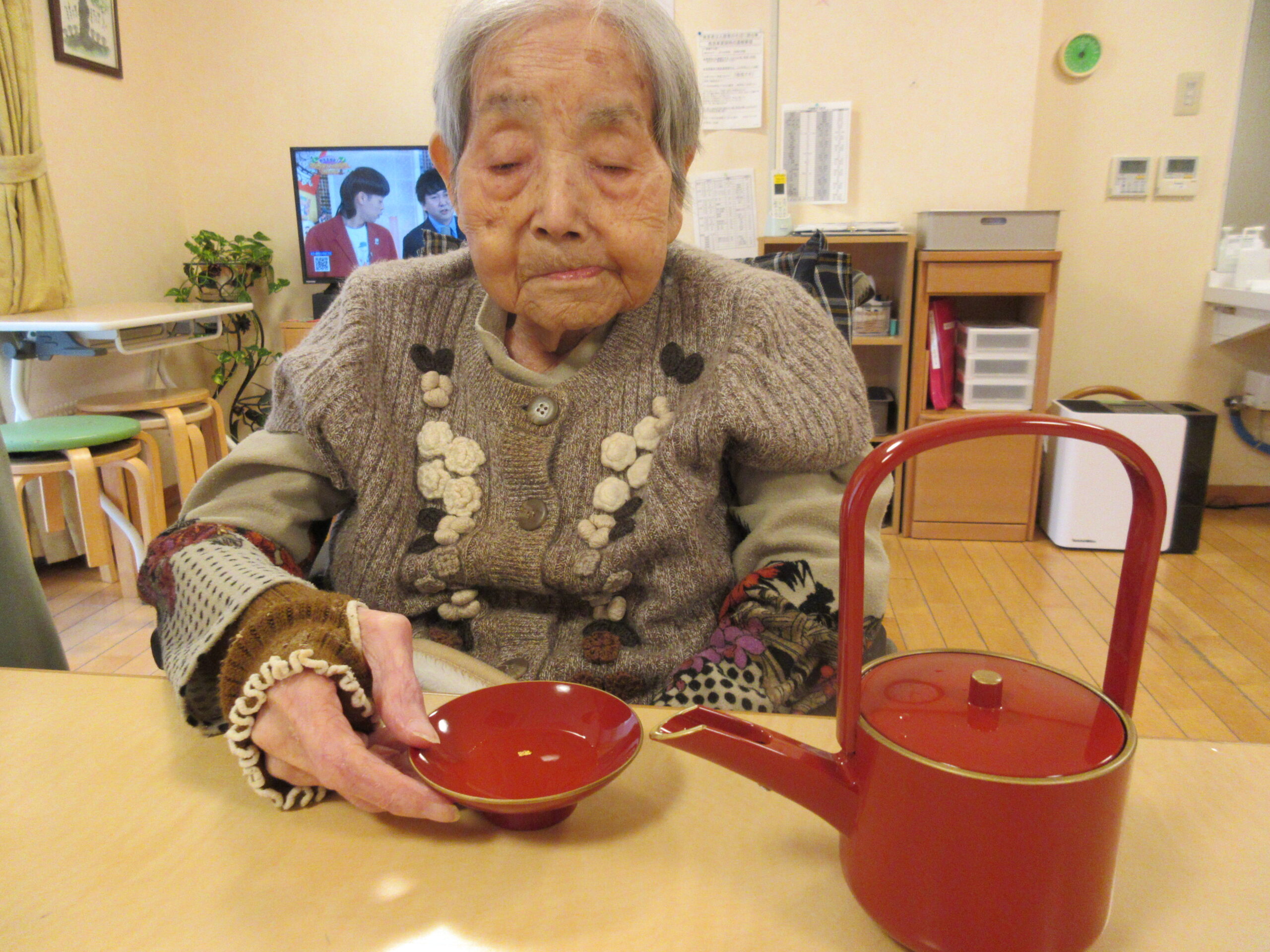 お屠蘇とは、一年の邪気を払い、無病長寿を願って元旦にいただく祝いの飲み物のことを言います。病気を遠ざけ、健康でまた新年を過ごせますように(^_^)