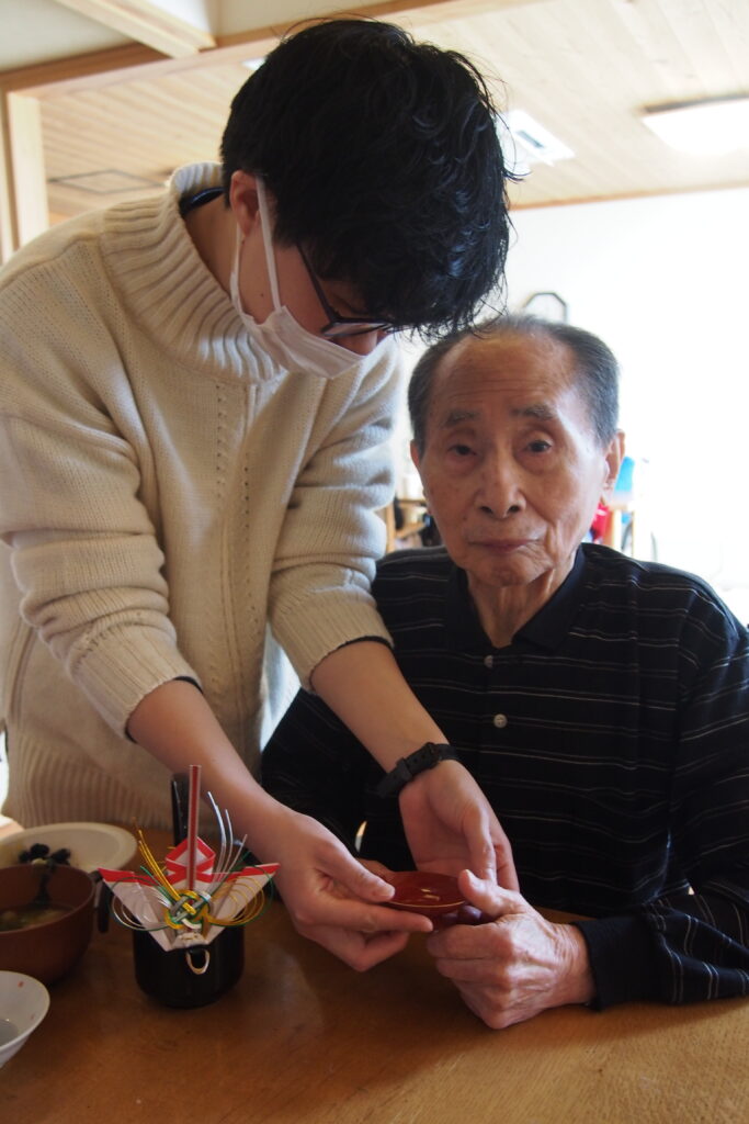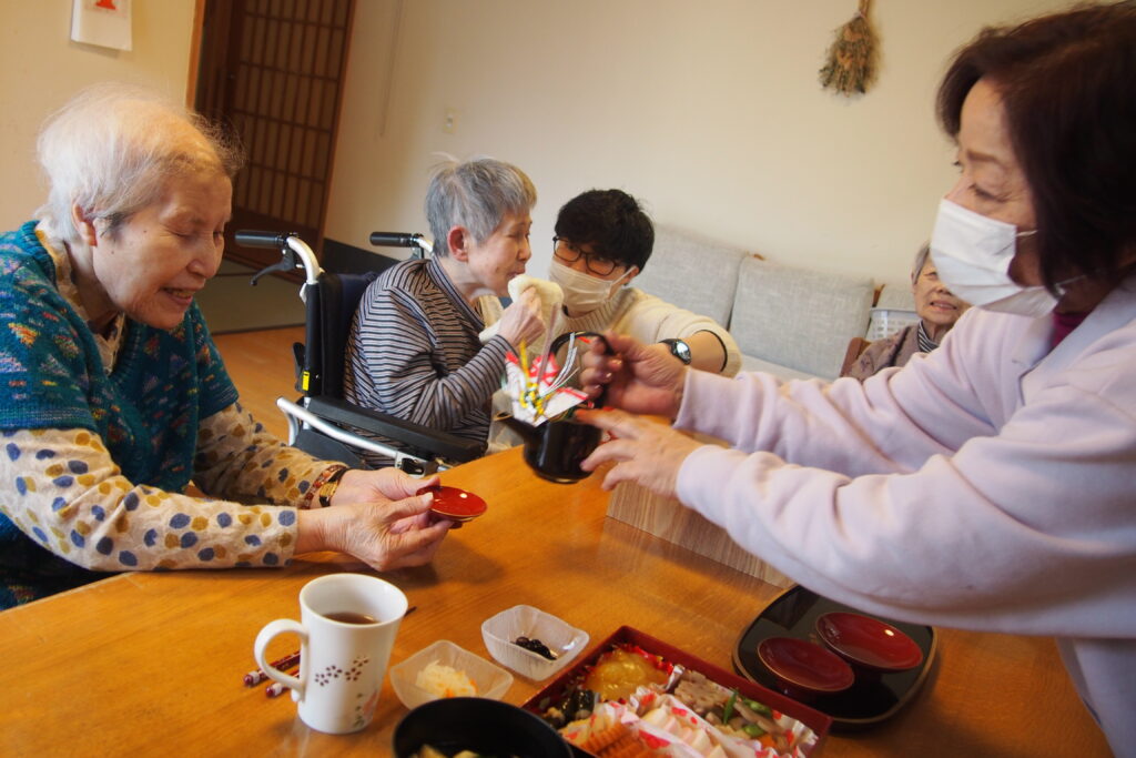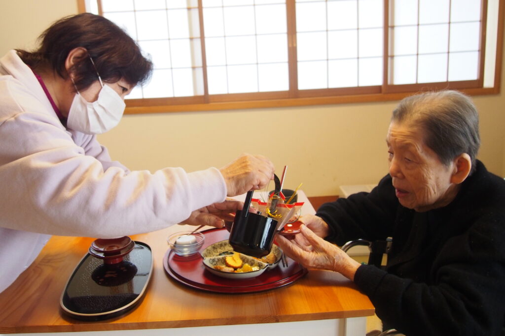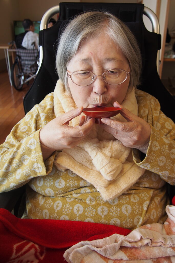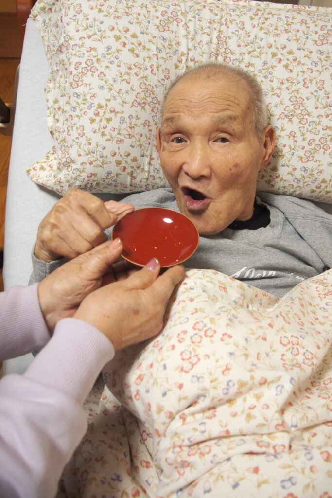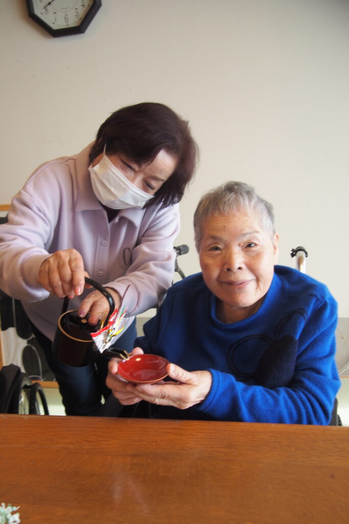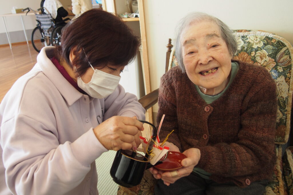 当日は、職員が由来を紹介しながら、一人ひとりにお屠蘇をお出ししました。杯を手に「今年も元気で過ごしたいね」「昔は家族で飲んだよ」と懐かしそうに話される姿も見られ、新年ならではの穏やかであたたかな時間となりました。
