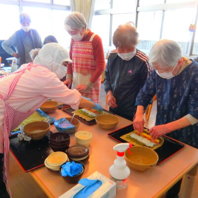 豆まきの後は、節分の豆にちなんだ“豆大福”のおやつタイム。「鬼よりこっちが楽しみ」との声も聞こえ、和やかなひとときを過ごしていただきました。