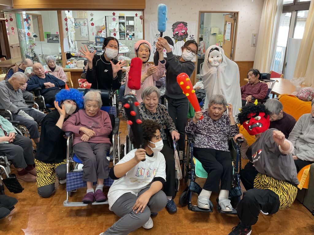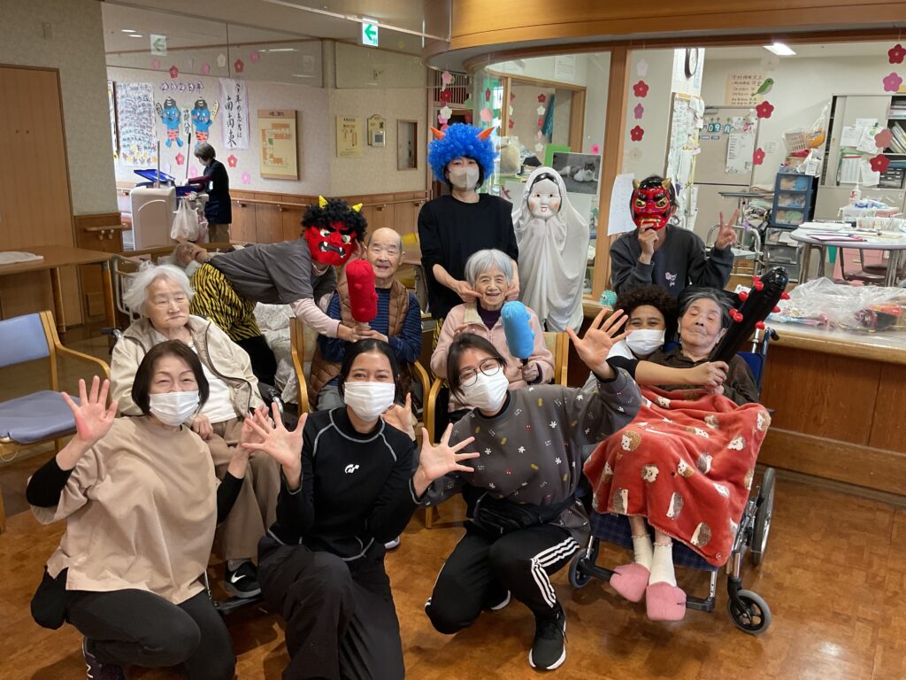 4階フロアで節分会を行いました。赤鬼と青鬼の登場に大盛り上がり!