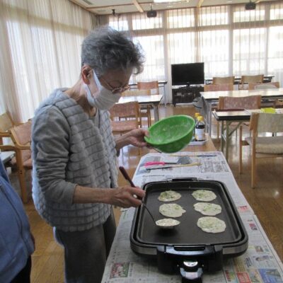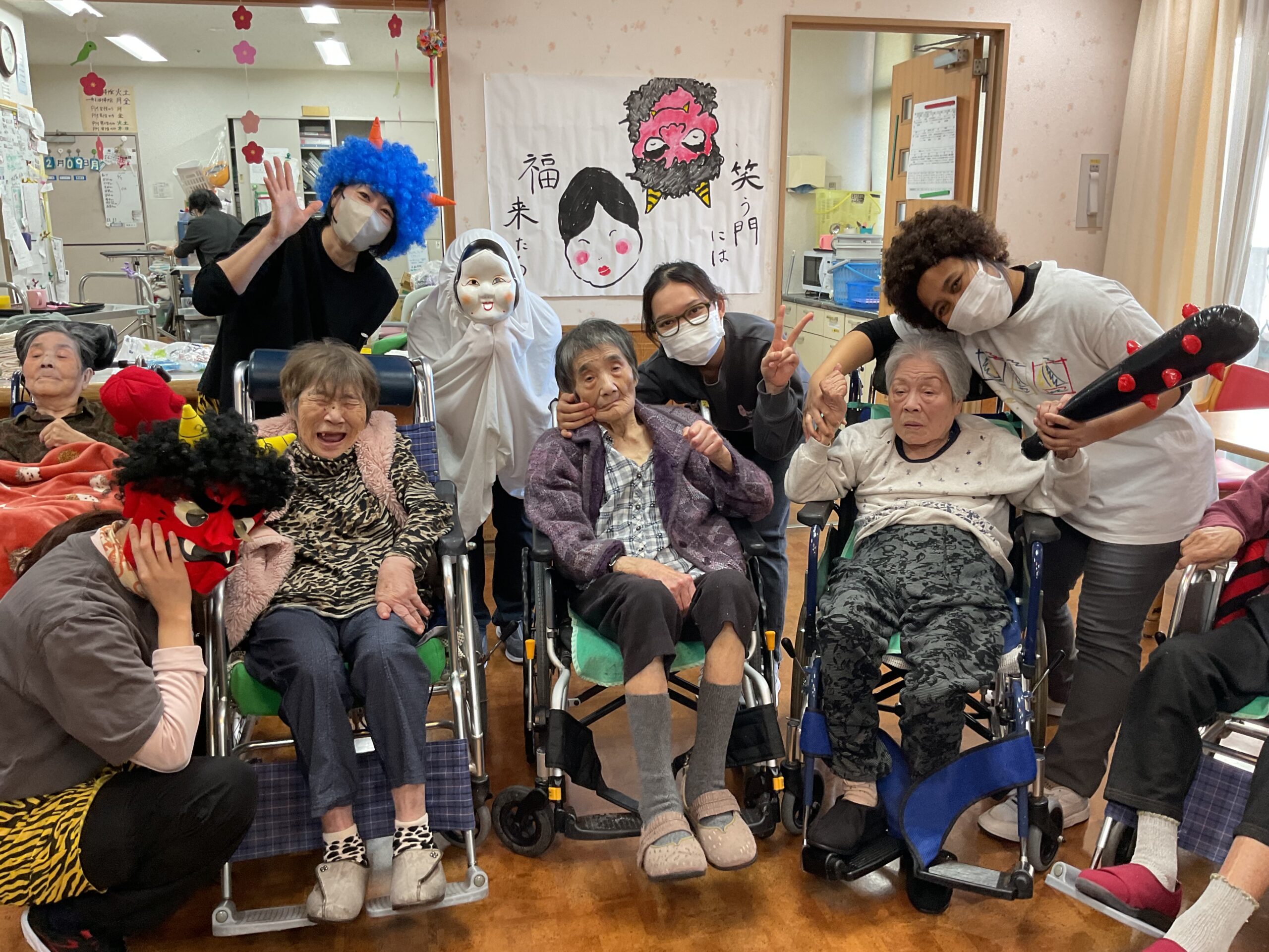 4階フロアで節分会を行いました。赤鬼と青鬼の登場に大盛り上がり!