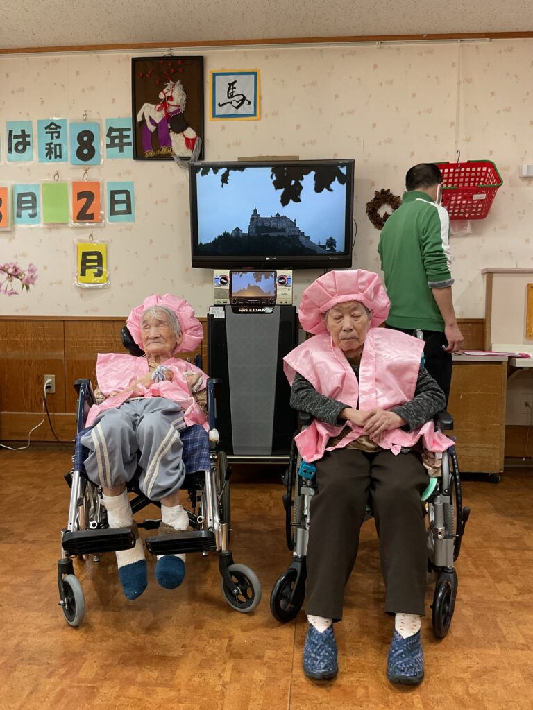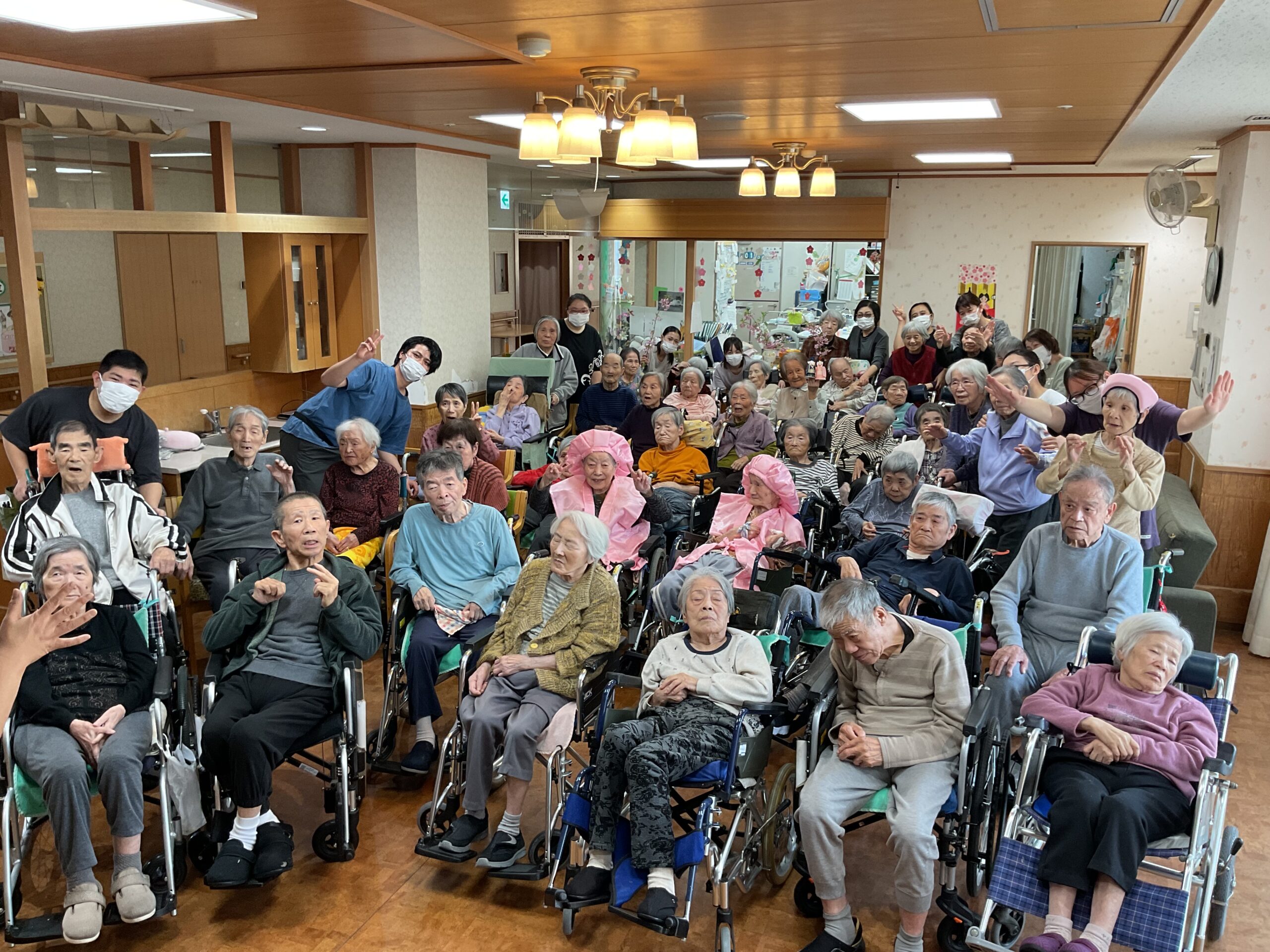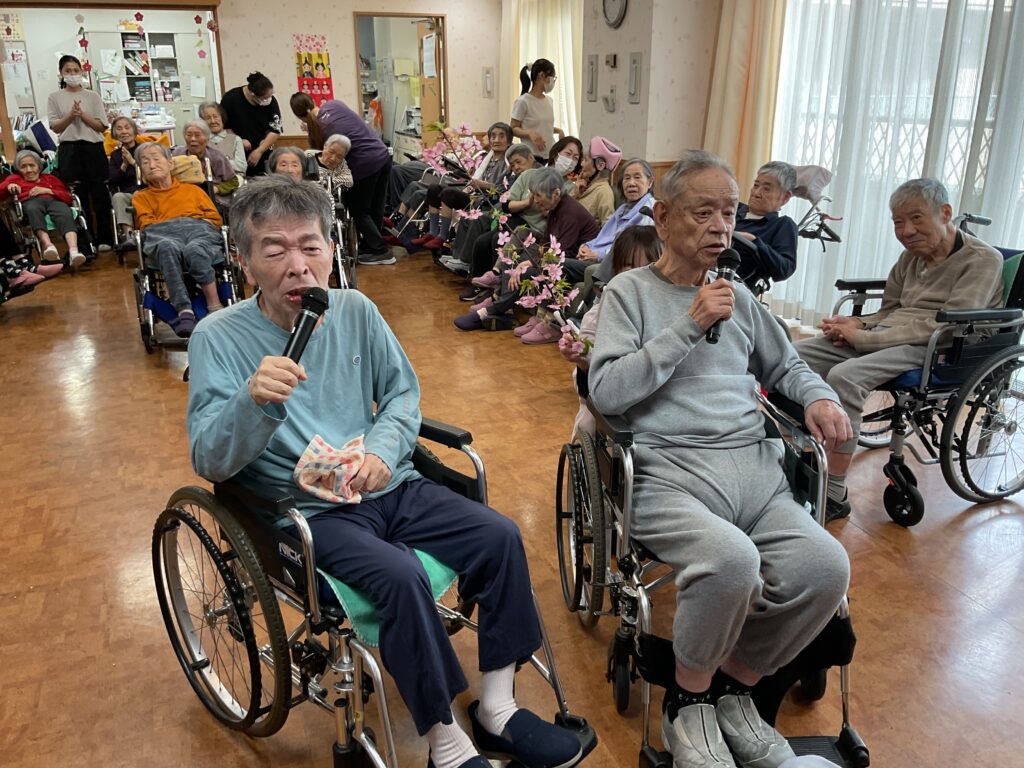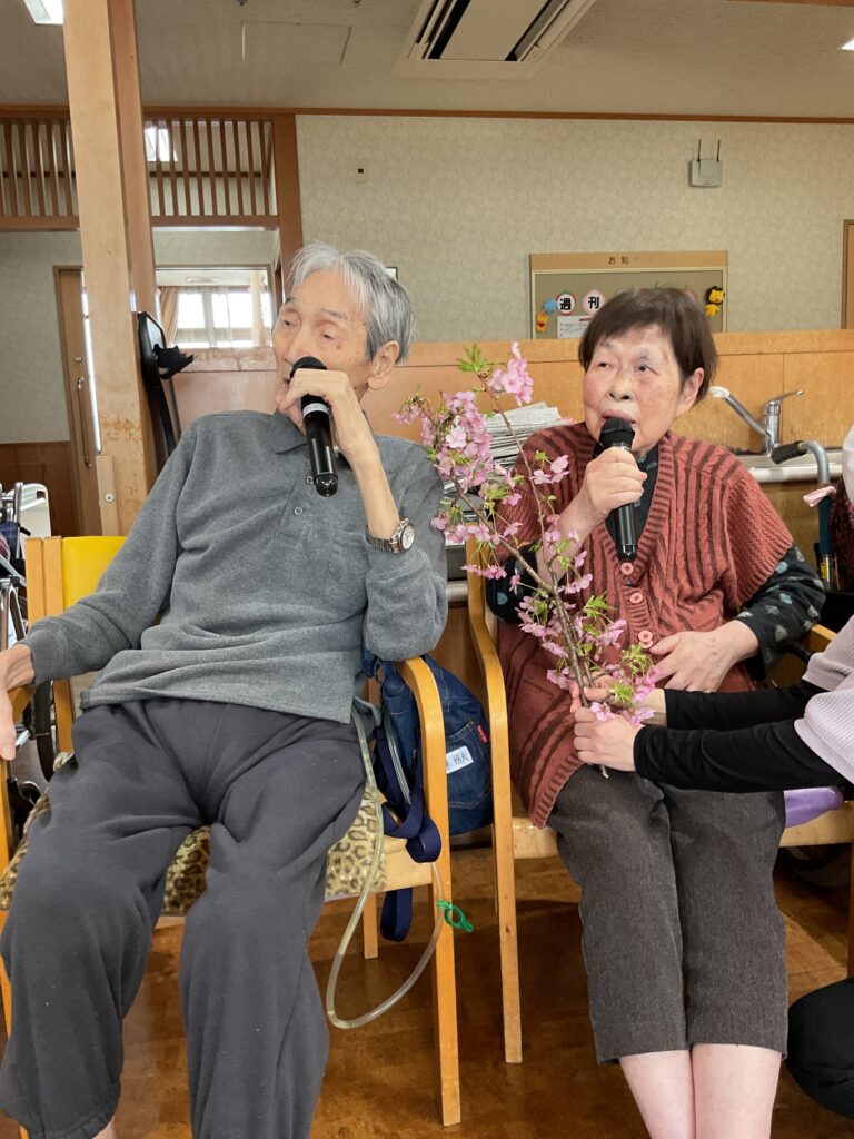 最初に3月にお誕生日を迎えられた、お二人の入居者様を皆でお祝いしました。