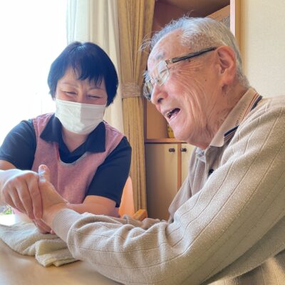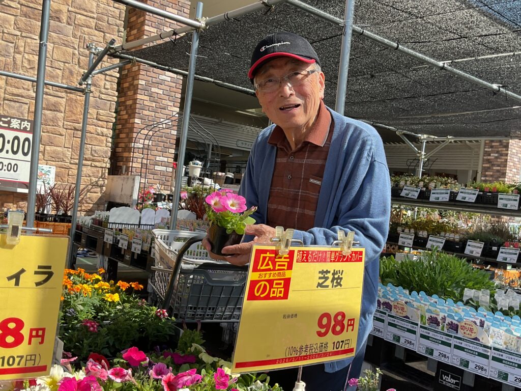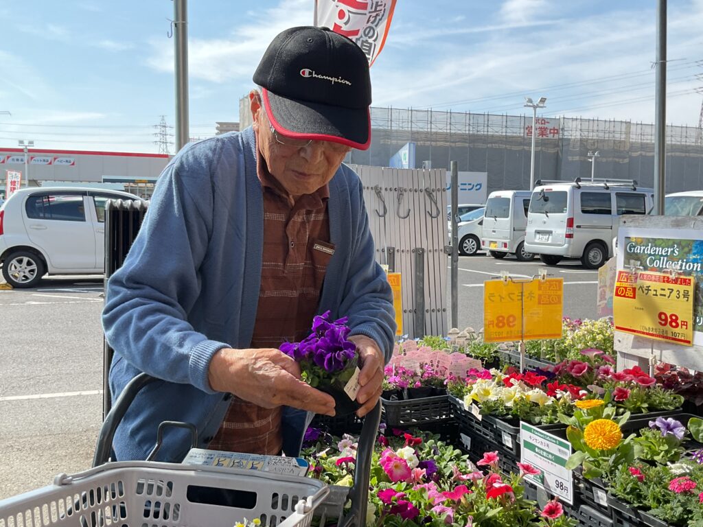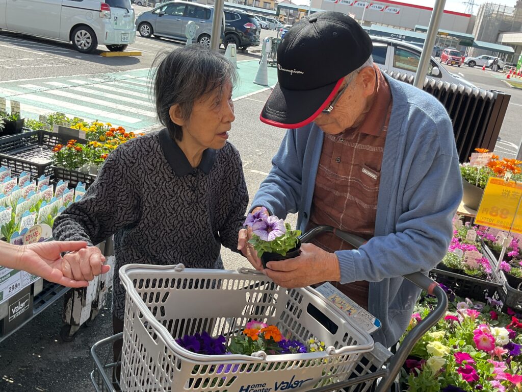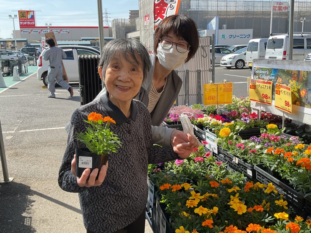 プランターに植える花の苗を買いに行きました。売り場をひと回りして「さぁて…花はよく分からんけどなぁ」と言われていましたが、色とりどりの苗を見て回り「あぁ、これがいいねぇ。とてもいい色だよ」「あ、これもいい。すごくいいね綺麗だ。」と選んでいらっしゃいました。花は自然と笑顔になります。色々な花を楽しめる季節になりました。また、是非、一緒に選びに行きましょうね。