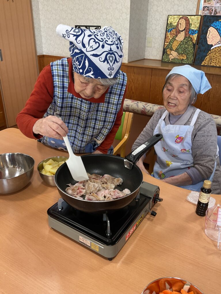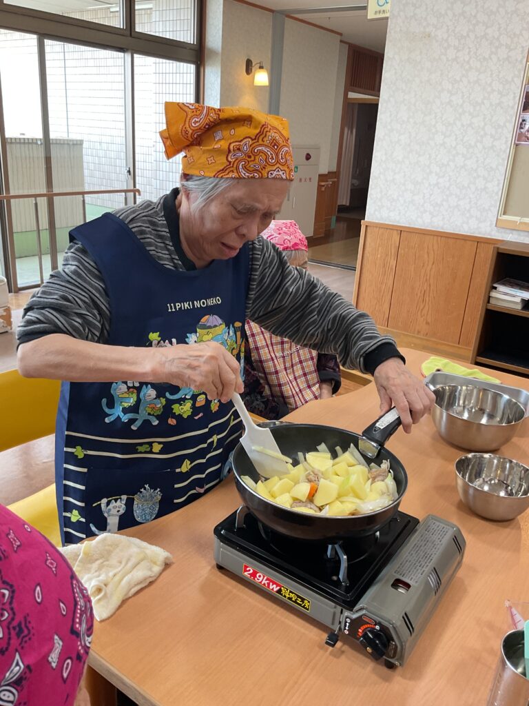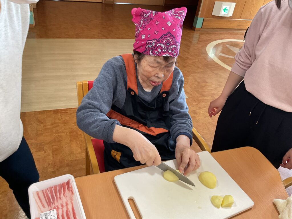 お昼ご飯に、入居者と職員で肉じゃがを作りました!