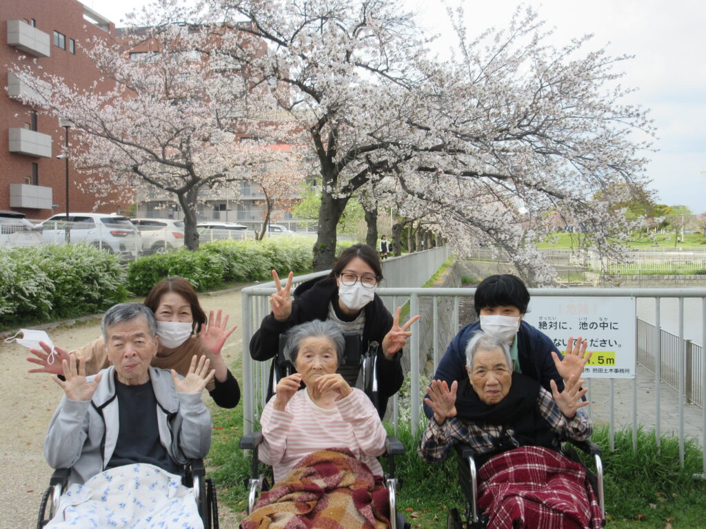 こすも お花見 2026.03.30 車で10分ほどにある白鳥公園へお花見に出掛けました🌸 前日は雨が降り、心配でしたが、皆さんの行いが良かったのか良い天気に恵まれました!皆さん桜の花に負けないぐらいの満開の笑顔😊👌 来年は、お弁当を持ってお花見したいですね!
